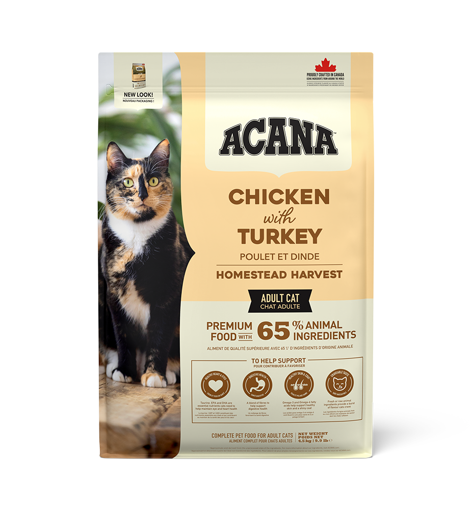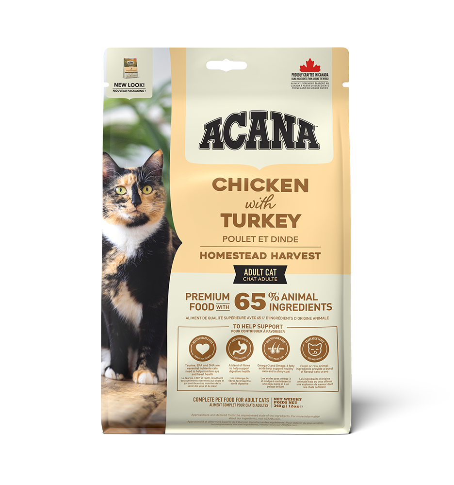 新鮮鶏肉 (17%), 乾燥鶏肉 (16%), 乾燥七面鳥肉 (13%), オートグローツ, 丸ごとエンドウ豆, 鶏脂肪 (7%), 丸ごと緑レンズ豆, 丸ごとヒヨコ豆, 丸ごと赤レンズ豆, 新鮮卵 (4%), 生七面鳥肉 (4%), レンズ豆繊維, フィッシュオイル (1%), 生鴨肉 (1%), 新鮮鶏内臓 (レバー, 心臓, 砂嚢) (1%), 生七面鳥レバー (1%), 乾燥ケルプ, 新鮮丸ごとバターナッツスクワッシュ, 新鮮丸ごとカボチャ, 丸ごとクランベリー, 丸ごとブルーベリー